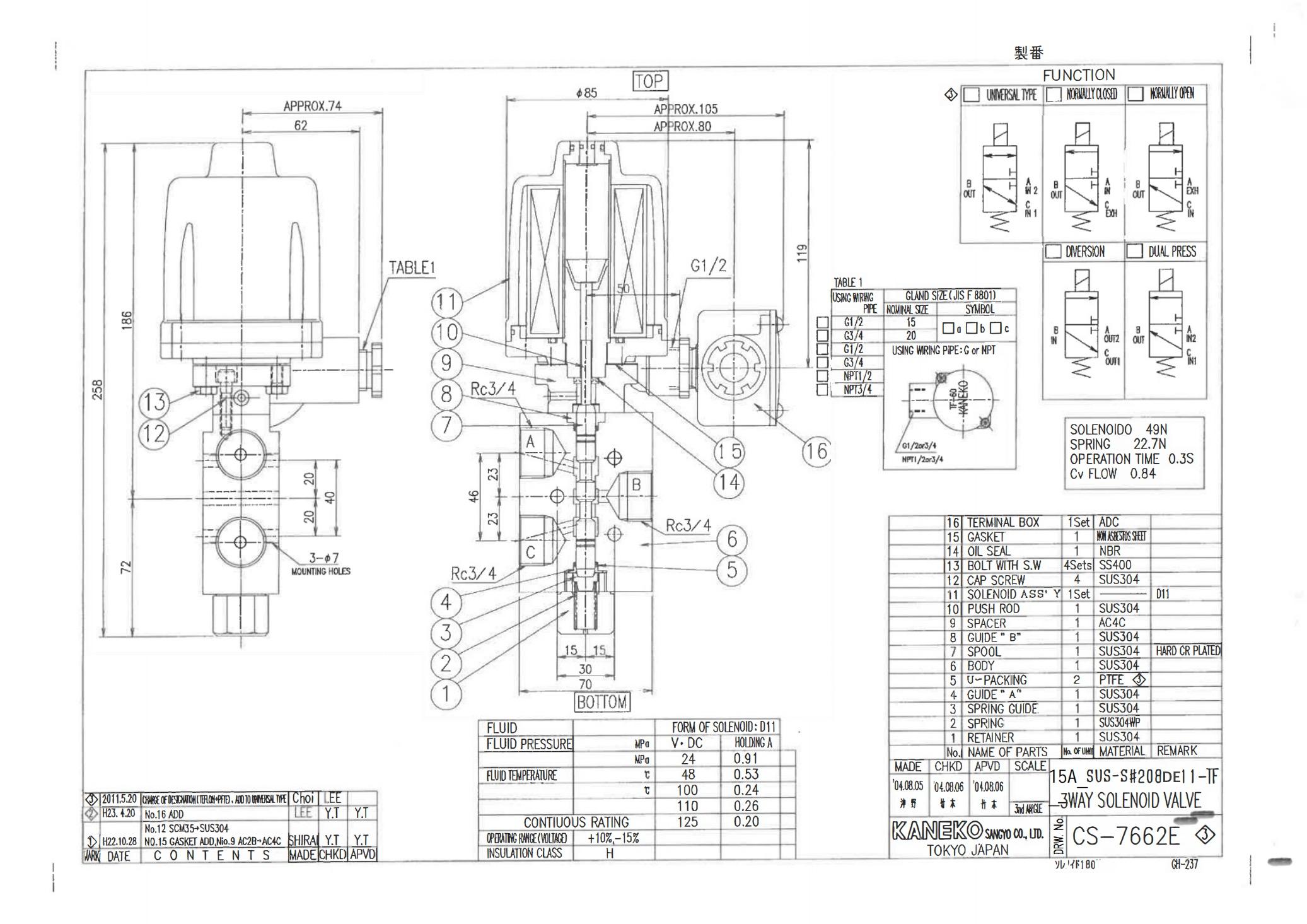 15A SUS-S #208DE11 DC24V KANEKO SOLENOID VALVE