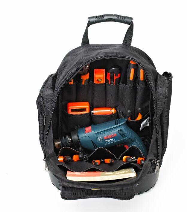 This tool backpack with many small pockets and waterproof material to protect the tools from water for electrician.