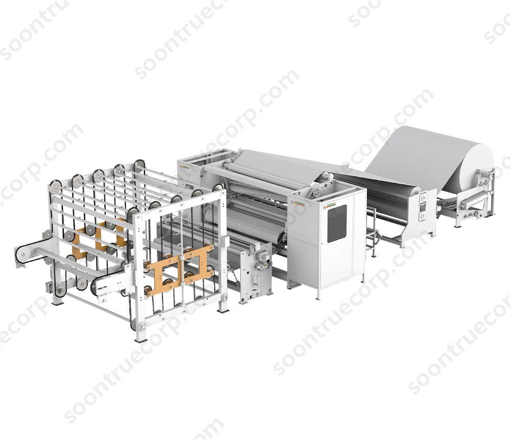With this non-stop toilet paper rewinding machine, you can produce toilet rolls and kitchen towels. The machine is very stable with high speed. ●Toilet paper rewinding machine adopting motion control technology and HMI control system, each part is driven and controlled independently in the full - servo execution paper separation mechanism, and the quality control of finished products is guaranteed. ●Toilet Paper Rewinding Machine can be configured with edge embossing unit, gluing and laminating unit, etc., to produce various patterns and types of tissue paper. ●The slitting knife can be configured on the machine, and the packaging machine can be connected to form a complete production line. ●Flexible line group: Optional connection of conveyor belt, large swing, small package machine, medium package machine, large package machine, intelligent full - automatic box packing, gluing and laminating, non - glue laminating, single embossing, double embossing group, etc. to form a differentiated automatic production line. ●The width of the base paper for this model is selectable: 1400, 1750, 1840mm. ●The rear frame adopts pneumatic paper - feeding function, which greatly reduces the labor intensity of workers. ●The whole machine is designed to discharge paper from the side (left or right direction can be selected at will), and can directly enter the large swing, so it occupies a small area. ●The standard machine does not include the first - half fold, but the first - half fold mechanism outside the machine can be optionally equipped. ●The inverter adjusts the paper - discharge speed according to different base papers. The whole machine is controlled by the human - machine interface, which is fast, simple, stable, and has high performance and a wide range of applications. ●The spiral horizontal single - cutting roller group is adopted: There is a spiral paper - cutting blade to ensure consistent cutting angle, low cutting noise, uniform force on the tool, and low loss. The structure is simplified, the space is ample, and the adjustment and maintenance are very convenient. When the knife roller is overloaded, it can rotate to unload the force, effectively protecting the surface knife and bottom knife. ●The folding roller used: (1) It is made of imported special materials for composite processing, and the rigidity of the roller body is greatly improved. Regardless of high or low - speed cutting, it can stably break the paper, and there is less noise during high - speed cutting. (2) The front and rear ends are suctioned to ensure sufficient vacuum to absorb the paper, resulting in higher paper - stacking accuracy, better stability, and a neater paper surface. Soontrue Group is a leading global Tissue Paper Machine Manufacturer, providing efficient solutions for facial tissue, kitchen towel, toilet paper roll and napkin production. If you are looking for more details, kindly visit our website.