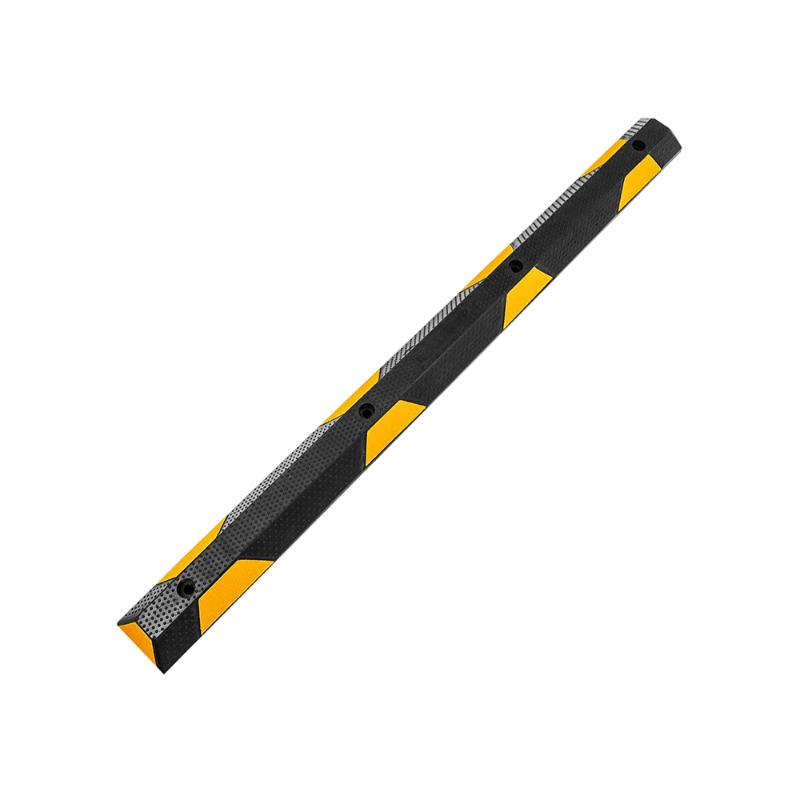 PVC Parking Curb with Reflective Stripe Chevrons Wheel stops are molded with highway reflective tape to increase visibility and safety. Includes pre-drilled holes for easy installation. Install this Parking Wheel Stop in your garage or driveway to keep the front of your vehicle safe from damage. PVC Parking Curb is durable. Perfect for any weather conditions and any road/concrete surfaces. There are 8 high reflective yellow stripes on the parking curb, which provide a good visibility ensure 360 degree visibility day and night, even in rain, snow, fog, hail or other bad weather. As the installation holes are pre-punched, you just need to fixed them in the suitable place and tight the bolts. Suitable for indoor/outdoor garage shopping mall, commercial, asphalt, concrete and business parking. Product Specifications: